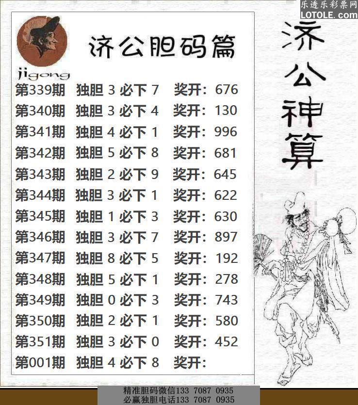 标题: 001济公神算乐透乐 第一时间发布