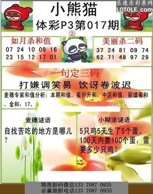 标题: 017小熊猫乐透乐 第一时间发布