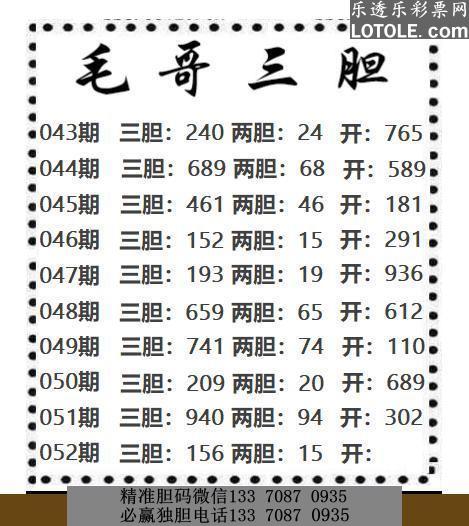 52毛哥三胆乐透乐 第一时间发布