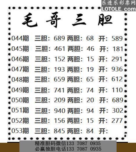 标题: 53毛哥三胆乐透乐 第一时间发布