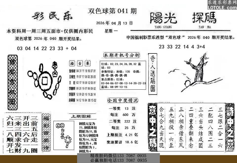 6041彩民乐 阳光探码图文版乐透乐 第一时间发布