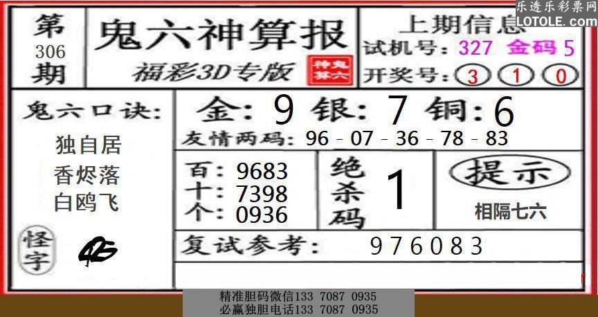 306鬼六神算乐透乐 第一时间发布