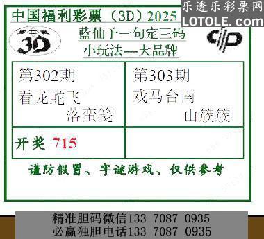 303蓝仙子一句定三码乐透乐 第一时间发布
