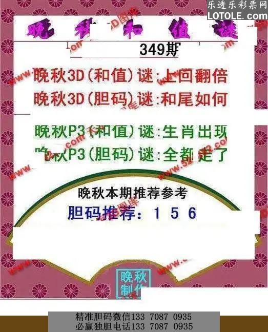 349晚秋和值谜乐透乐 第一时间发布