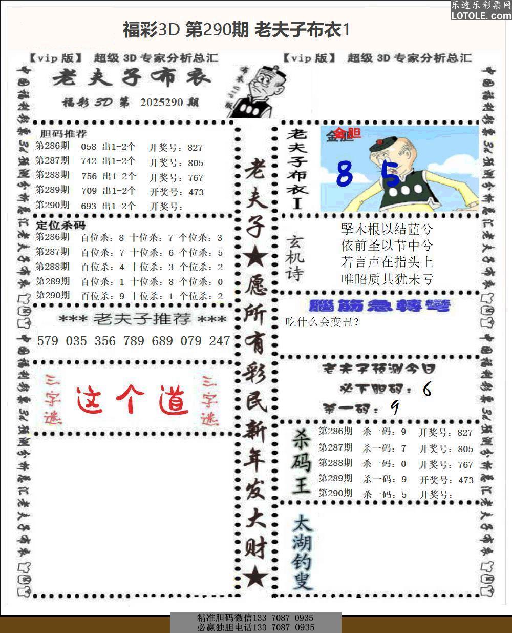 标题: 290老夫子布衣乐透乐 第一时间发布