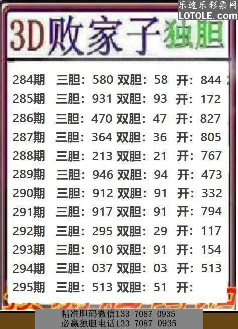 295败家子独胆乐透乐 第一时间发布